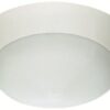 Vägg-/takarmatur med vit stomme och semitransparent kupa av polykarbonat.